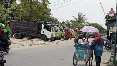 Kabupaten Tangerang, faktaonenews.com – Terlihat jelas barisan mobil Dump Truck yang berjejer di samping irigasi milik BBWS C3 di desa Sindang panon Kecamatan Sindang jaya Kabupaten Tangerang yang sedang menunggu antrean muat tanah. Jum’at 10/10/2025