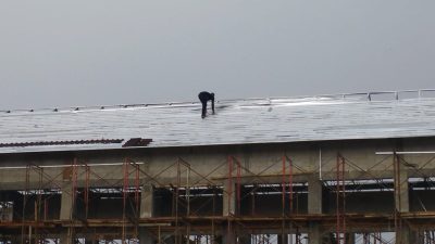 Proyek USB SMKN 15 Kabupaten Tangerang tahap 2 yang dikerjakan oleh CV. PUTRA GLOBAL GEMILANG, Rp. 7.441.247.056; ( Tujuh Miliar Empat Ratus Empat Puluh Satu Juta Dua Ratus Empat Puluh Tujuh Ribu Lima Enam Rupiah), sejumlah pekerja beraktivitas di atas atap tanpa alat pelindung diri (APD) seperti helm, rompi, sarung tangan, Tidak terlihat dari pengawas atau konsultan proyek di lokasi saat pekerjaan berlangsung.