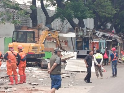 berjejer bangunan lapak tempat makan selama 30 tahun terlihat kumuh tidak terawat tidak Ada perbaikan fisik, secara ekonomi, dan sosial. tidak mencerminkan estetika tata kota di tertibkan _ Dinas Bina Marga Kec Tebet Kelurahan Menteng Dalam.